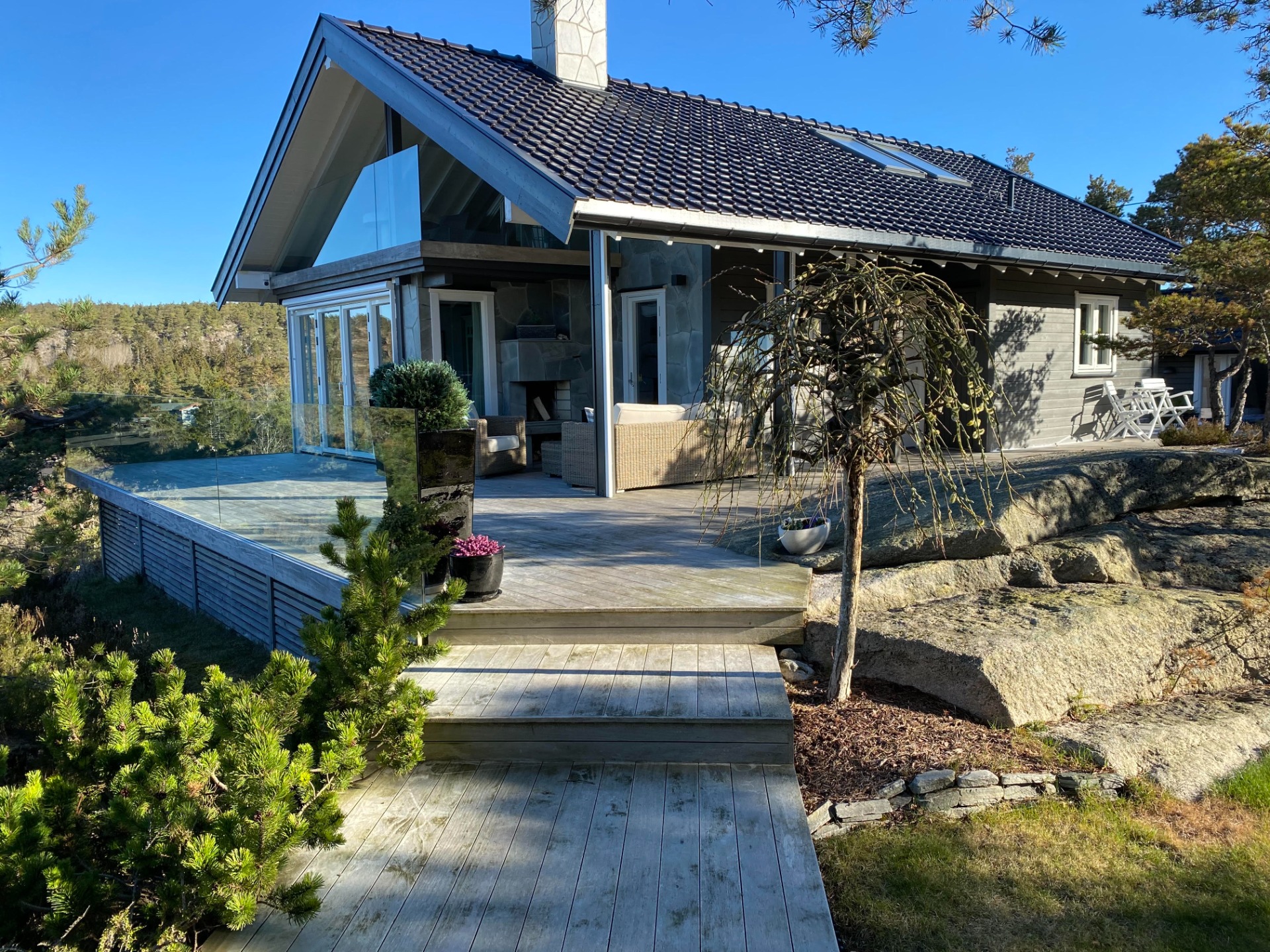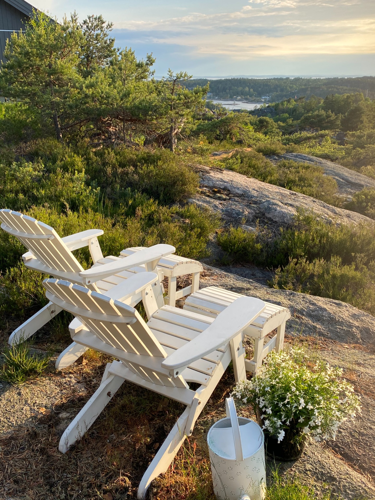 Hos oss står trivsel og komfort høyt i kurs. Her kan du tusle barbeint på plattingene uten flis. Her kan du dekke langbord og nyte et bedre måltid i sol, i le eller sval skygge om dagene er varme. Våre uteområder er strategisk plassert etter vær og vind. Vi er begge opptatt av interiør med stort fokus på hyggelig atmosfære både ute og inne.